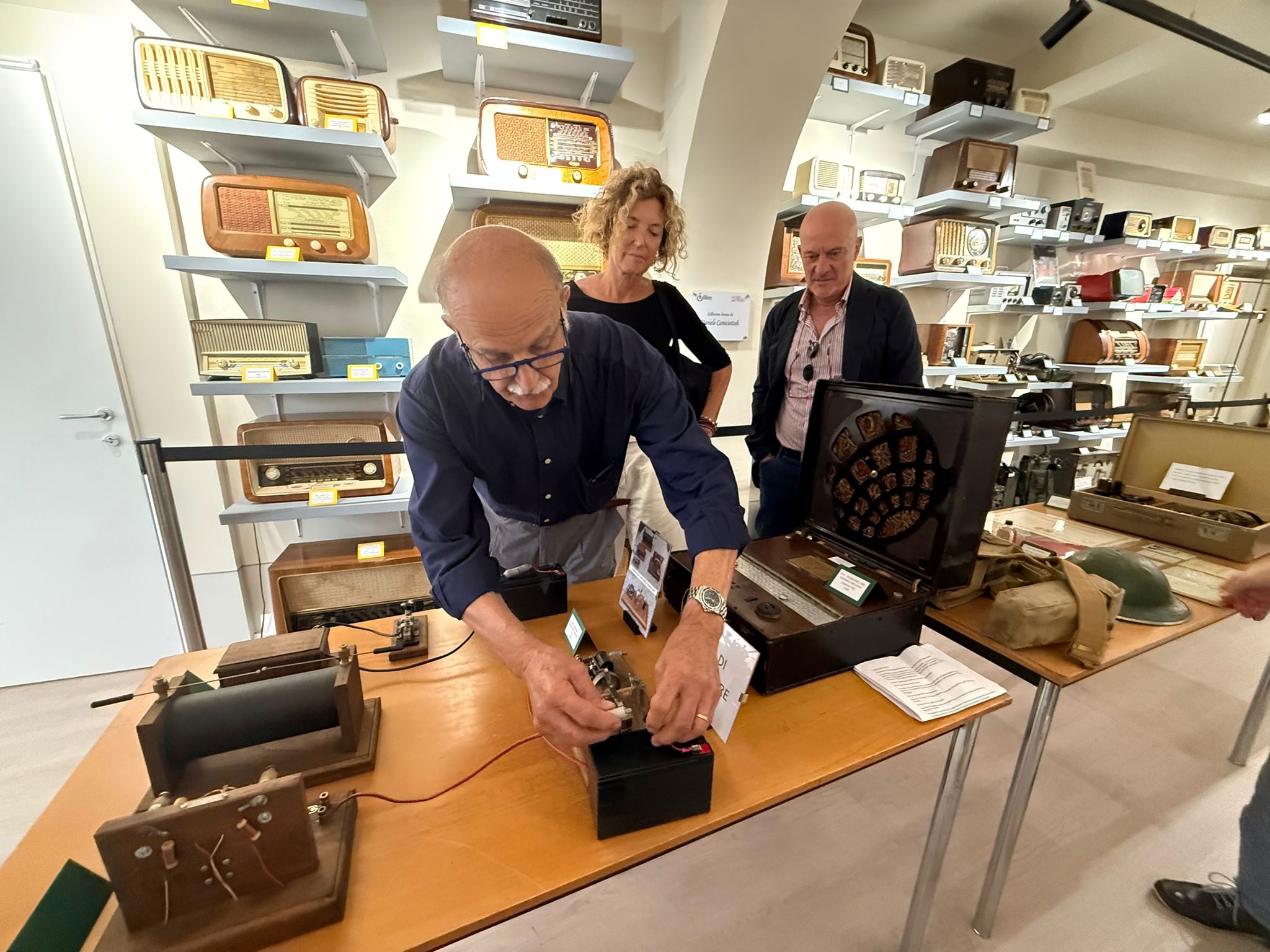 Dopo la presentazione del volume, il Sindaco David Baroncelli ha voluto accompagnare Sandra Bonzi e Claudio Bisio a visitare il Museo della Radio, aperto da qualche settimana in via Roma grazie alla generosa donazione del concittadino Daniele Camiciottoli. E’ stato il collezionista a guidare gli ospiti nel viaggio a ritroso, dai primi del secolo scorso fino a i giorni nostri, tra le 270 radio d’epoca esposte nei locali riqualificati dal Comune, adiacenti al Cinema Olimpia con un particolare sguardo rivolto agli apparecchi costruiti e realizzati più di ottant’anni fa, durante il secondo conflitto mondiale, compresi quelli mobili utilizzati dai partigiani per comunicare e trasmettere la posizione dei nemici.