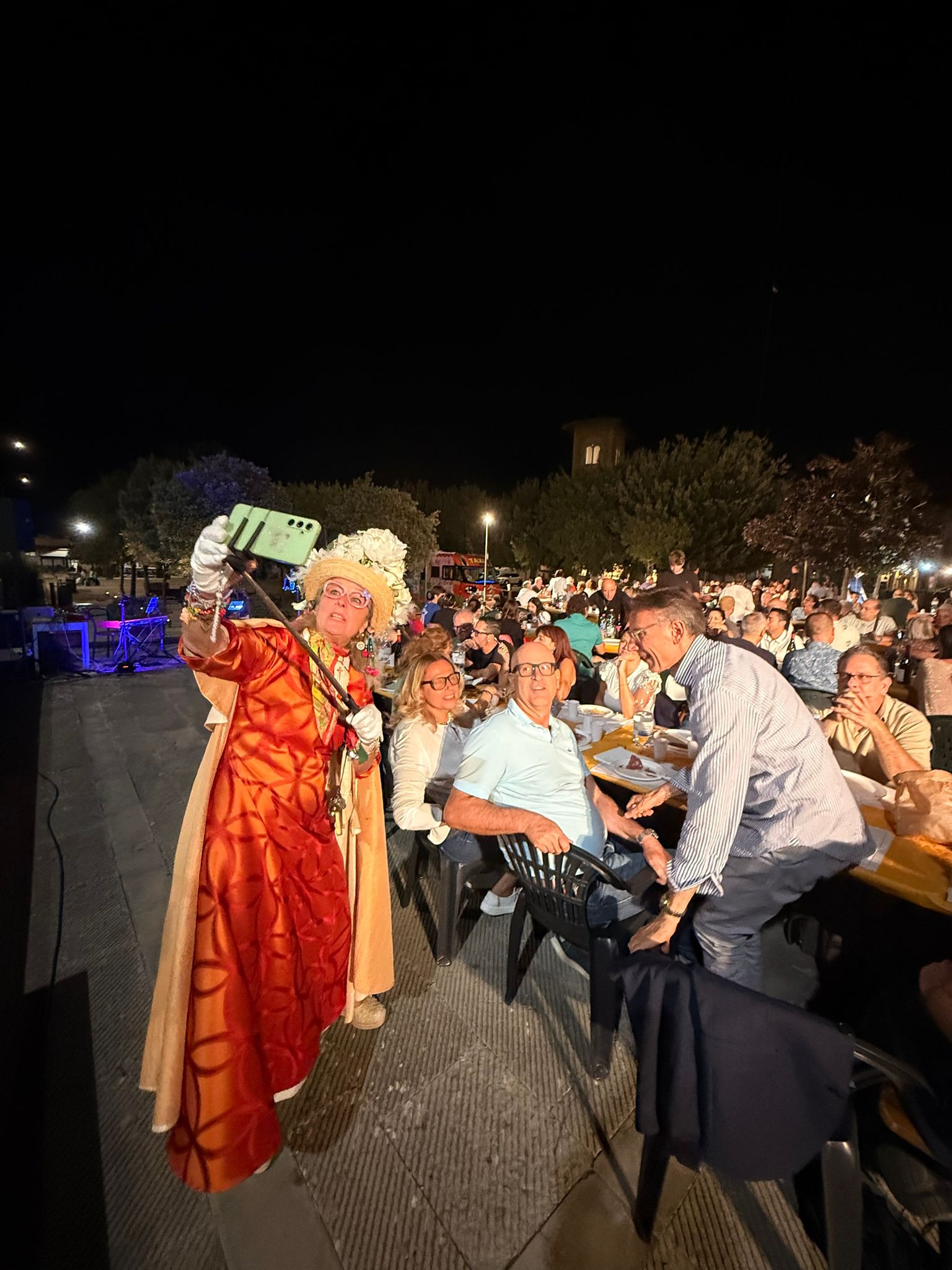 Il lungo viaggio di solidarietà di Zia Caterina ha fatto tappa nel Chianti ed è stato un successo straordinario, attestato dalla massiccia partecipazione delle cittadine e dei cittadini di Barberino Tavarnelle. In 230 si sono ritrovati, l’altra sera, in Piazza Matteotti per aderire alla cena di raccolta fondi e sostenere il cammino di amore, autentico e profondo, di Zia Caterina. A bordo delle sue ‘case viaggianti’, targate Taxi Milano 25, un taxi dedicato a SuperSole e un camper parcheggiato nel cuore della piazza dedicato a SuperKikko, la Zia dei sorrisi ammalianti, dei giochi e delle magie divertenti, dei maestosi cappelli fioriti e degli occhiali stravaganti è giunta in piazza attesa a tavola da tantissime famiglie. Ancora una volta Zia Caterina è stata la special guest, l’amata ambasciatrice della missione di solidarietà e vicinanza che da tempo porta avanti in tutta la regione con l’obiettivo di regalare emozioni e benessere ed illuminare le vite dei più piccoli e delle più piccole segnate dal dolore.