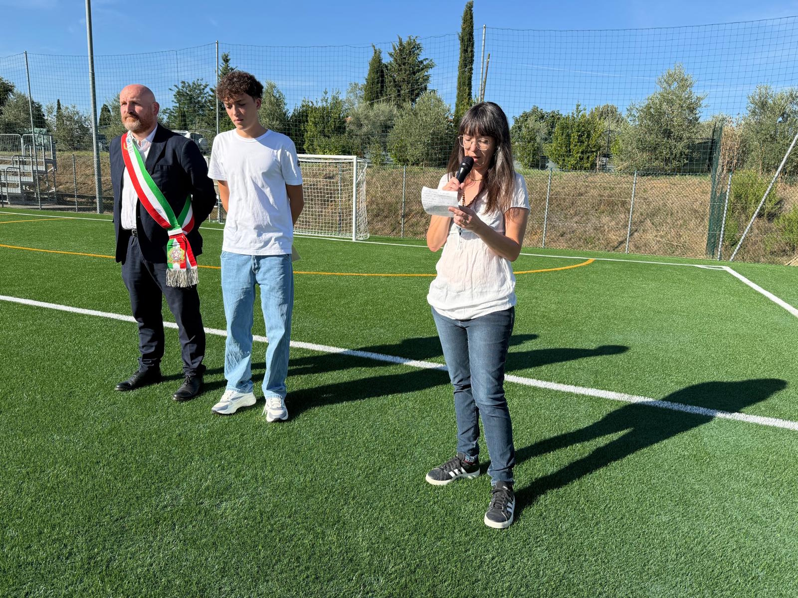 Ad emozionare il pubblico è stato anche un messaggio del Presidente della San Donato Tavarnelle Andrea Bacci che, non potendo presenziare la cerimonia, ha fatto giungere alla famiglia un messaggio che è stato letto nel corso dell’evento. “Io e Sabrina siamo dello stesso anno di nascita, siamo stati in classe insieme ed abbiamo avuto la stessa carriera sportiva anche se in sport diversi. Negli anni ci siamo incrociati e ritrovati casualmente insieme a cerimonie di premiazioni sportive. Questo per entrambi era un altro piccolo successo, in particolare di far conoscere anche fuori dal nostro territorio il nome del nostro amato comune. La vita sportiva ci ha dato tanto e non parlo di vittorie ma di amicizie e valori sportivi che Sabrina ha sempre saputo trasmettere anche agli altri. E’ un onore per me essere il presidente del San Donato Tavarnelle e sapere che il campo di calcio a 7 verrà intitolato in sua memoria con il suo nome. Un impianto dove tutti i bambini della scuola avranno possibilità di sentirsi liberi, divertirsi ed imparare a condividere tutti quei valori sportivi che Sabrina era maestra nel trasmettere e che sicuramente custodirà dal cielo”.