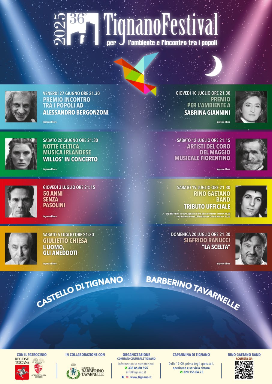 La 36ma edizione del Tignano Festival per l’Ambiente e l’Incontro tra i Popoli di Barberino Tavarnelle presenta quest’anno un cartellone che alterna agli incontri di riflessione sui temi della pace e della salvaguardia dell’ambiente alcuni appuntamenti su intellettuali o artisti che hanno osservato la realtà in modo visionario e critico, con dei focus speciali sul giornalismo d’inchiesta.