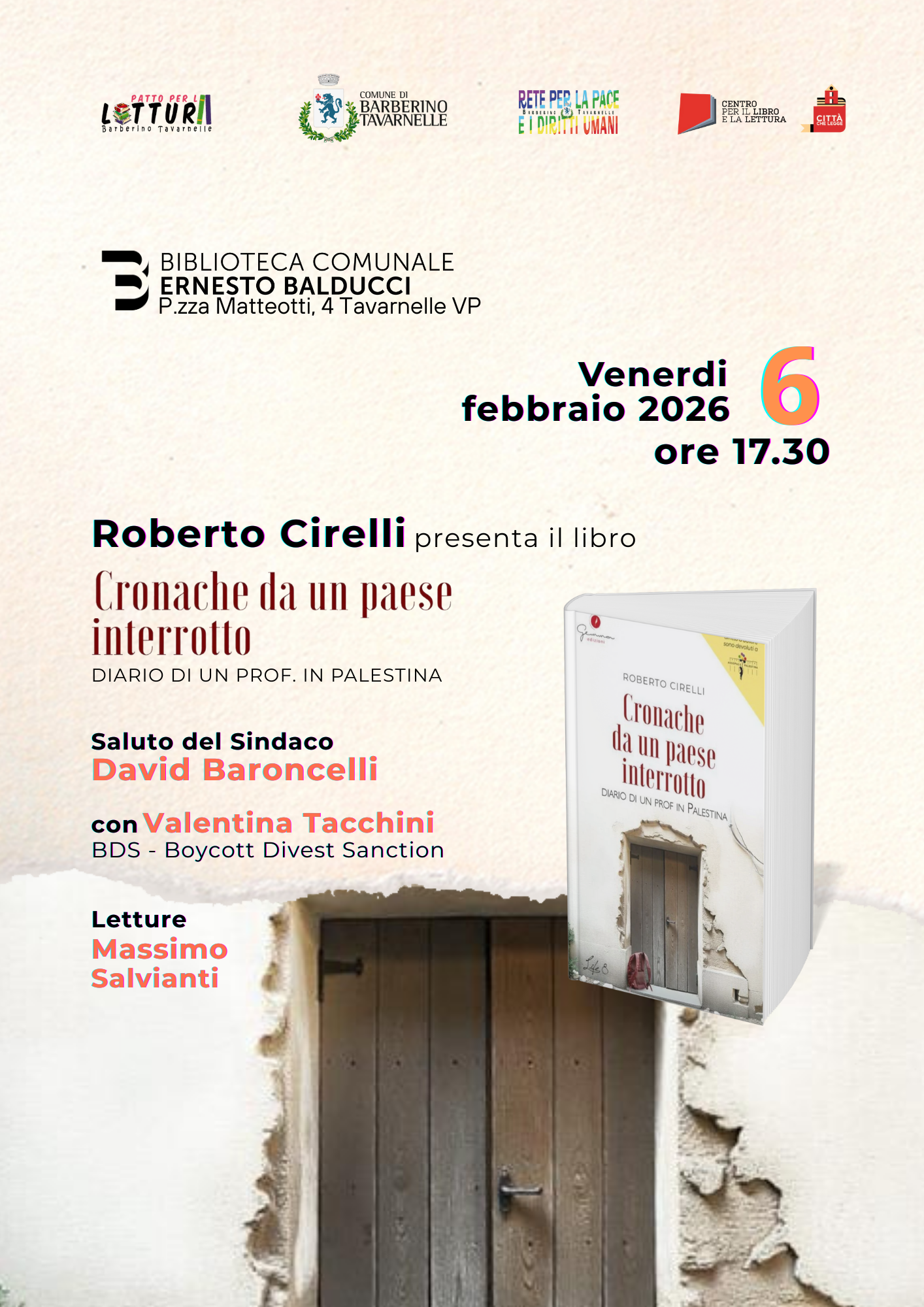 Parteciperanno all'evento: il sindaco David Baroncelli per i saluti, Massimo Salvianti per le letture ed interverrà Valentina Tacchini della BDS - Boycott Divest Sanction.