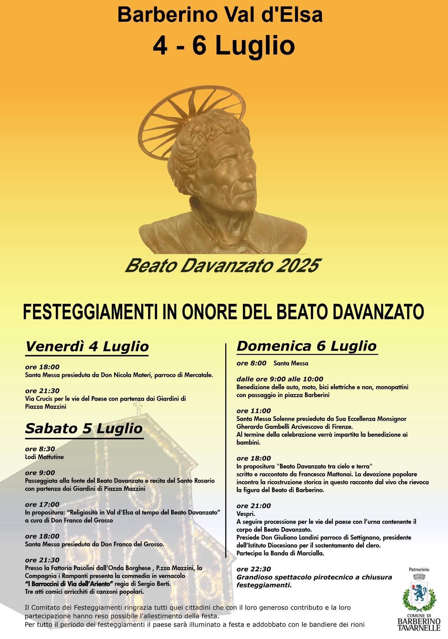 Domenica 6 luglio avrà luogo la tradizionale processione per le vie del paese, presieduta da Don Giuliano Landini parroco di Settignano e presidente dell'Istituto Diocesano per il sostentamento del Clero, con l’urna contenente il corpo del Beato Davanzato.