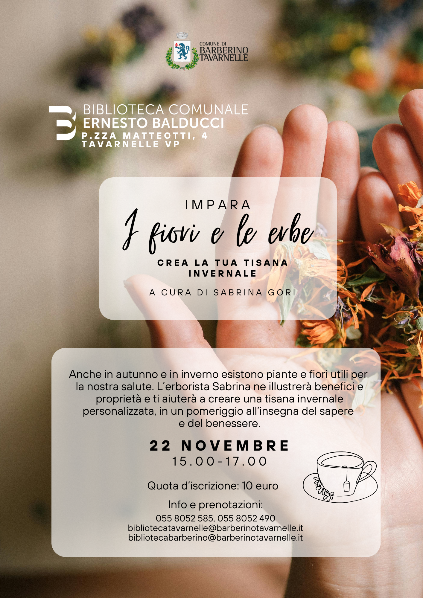 L'erborista Sabrina ne illustrerà benefici e proprietà e ti aiuterà a creare una tisana invernale personalizzata, in un pomeriggio all'insegna del sapere e del benessere.