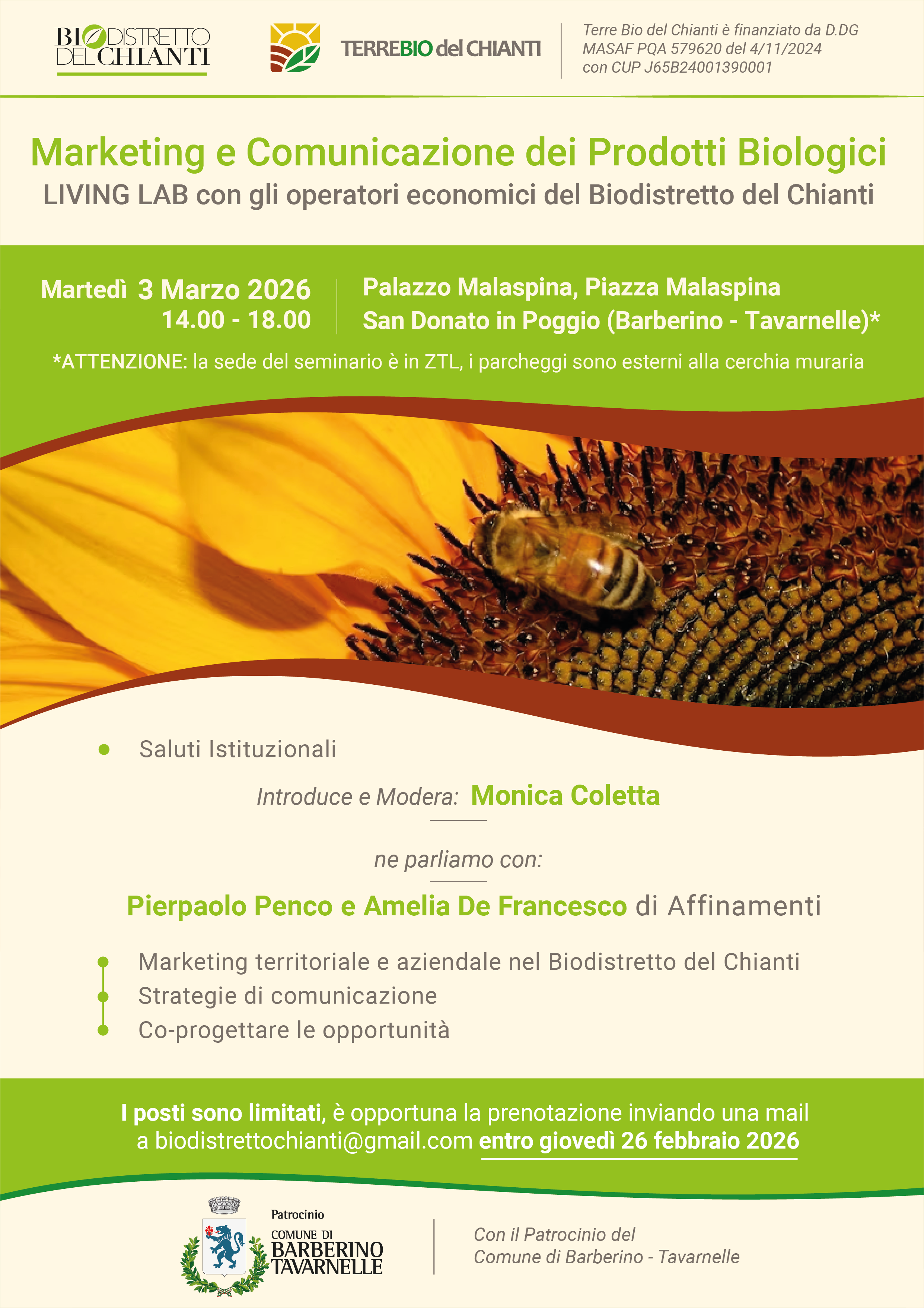 I posti sono limitati, è opportuna la prenotazione inviando una mail a. biodistrettochianti@gmail.com entro giovedì 26 febbraio 2026.