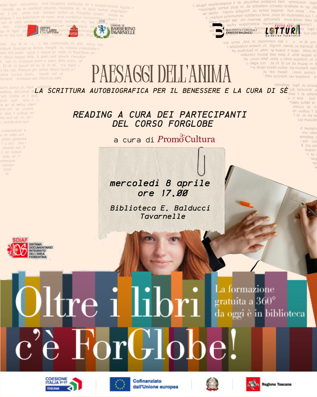 Si terrà presso la Biblioteca Comunale "Ernesto Balducci" di Tavarnelle, un reading pubblico che vedrà protagonisti i partecipanti del corso ForGlobe.