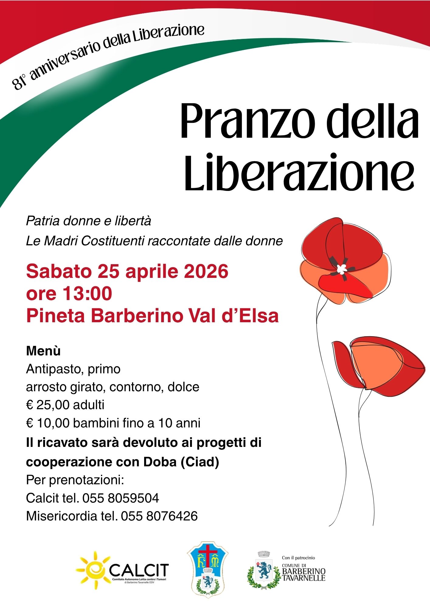 Le associazioni Calcit e Misericordia di Barberino Tavarnelle promuovono il pranzo di Beneficienza presso la Pineta di Barberino Val d'Elsa.