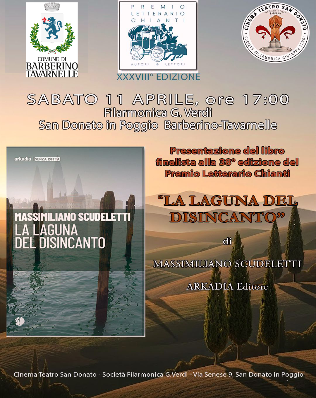Il secondo degli incontri con gli autori finalisti del 38' Premio avrà luogo presso la sala del Teatro Cinema la Filarmonica G. Verdi di San Donato in Poggio, quando la giuria dei lettori incontrerà l'autore Massimiliano Scudeletti e la sua "Laguna del disincanto".
