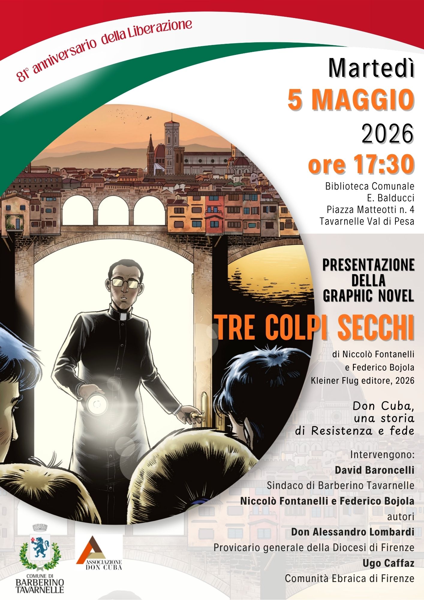 In occasione dell'81° anniversario della Liberazione, la Biblioteca Comunale E. Balducci di Tavarnelle Val di Pesa ospita gli autori Niccolò Fontanelli e Federico Bojola per la presentazione della Graphic Novel intitolata "Tre colpi secchi".